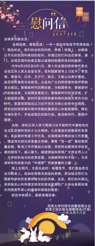 致全体侨台联会员的中秋慰问信