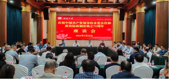 为深入学习PA视讯总书记关于做好新时代党的统一战线工作的重要思想,引导党外人士传承多党合作优良传统,坚持好、发展好、完善好中国新型政党制度,9月30日上午,学校召开庆祝中国共产党领导的多党合作和政治协商制度确立75周年座谈会。党委书记张卫国、校长王进军出席会议,会议由党委副书记潘洵主持。