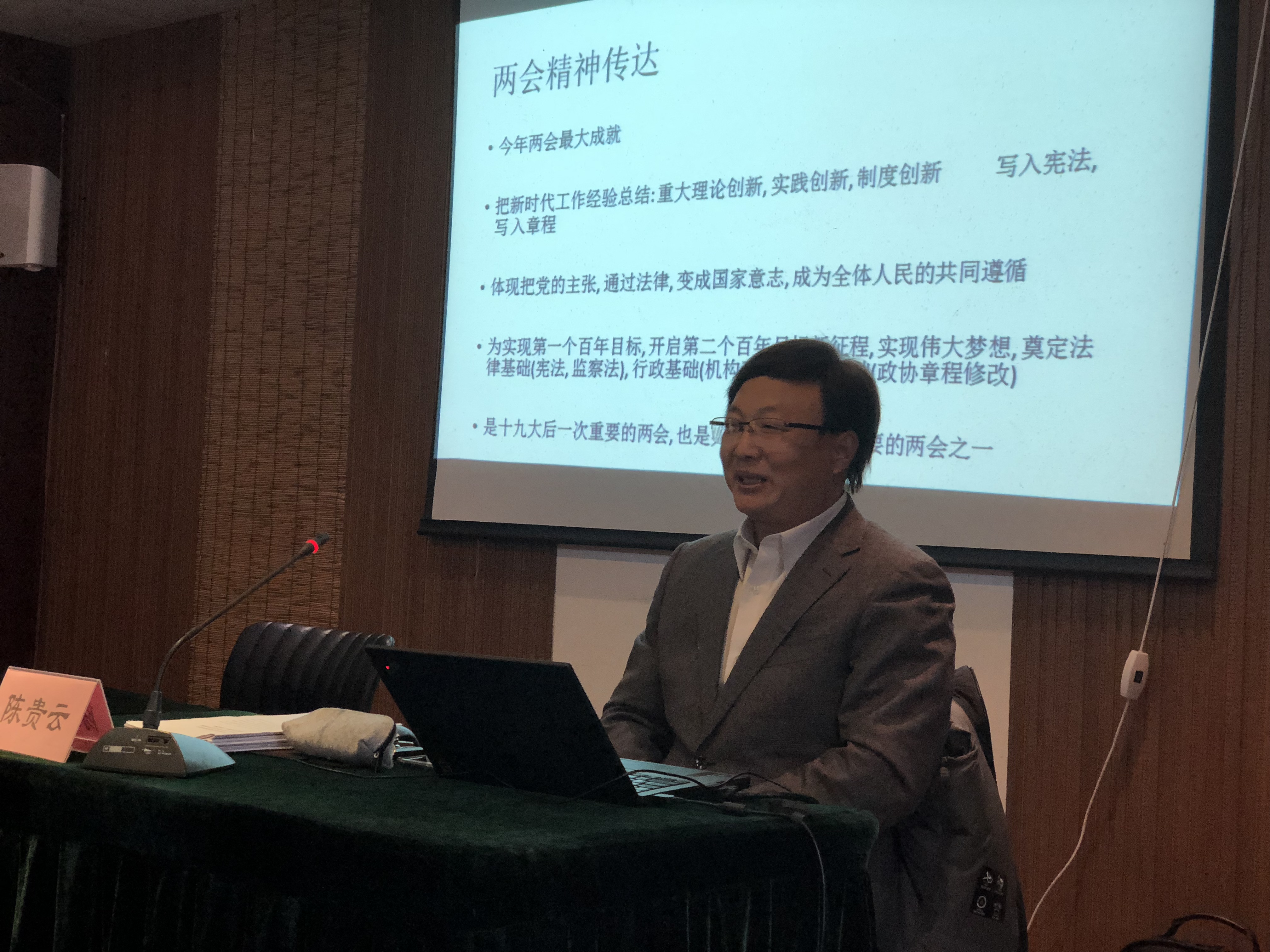 3月24日,民进PA视讯总支召开会议,邀请全国政协委员、重庆市政协副主席、民进重庆市委会主委陈贵云向全体会员传达全国“两会”精神。