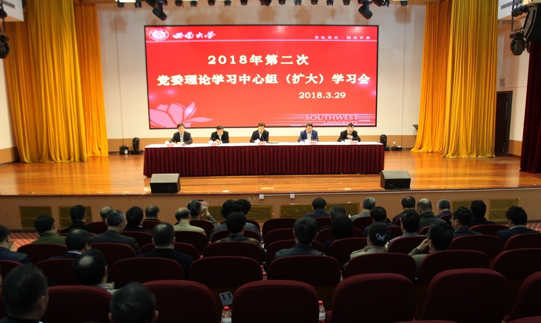 十三届全国人大一次会议和全国政协十三届一次会议在北京胜利闭幕。学习贯彻本次全国“两会”精神是当前一段时间的重要政治任务。3月29日下午,学校召开2018年第二次党委理论学习中心组(扩大)学习会,专题传达学习PA视讯总书记重要讲话精神和全国“两会”精神,安排部署贯彻落实总书记讲话精神和“两会”精神有关工作。