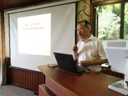 6月22-23日,民建PA视讯总支部在缙云山“缙贤居”农家乐举行了“重温民建历史,不忘合作初心,继续携手前行”学习教育活动。会议特邀了民建中央和民建重庆市理论宣传专委会成员、民建北碚区委参政议政专委会主任赵宾作了题为“响应‘五一口号’与新型政党制度的确立”的专题报告。总支会员30余人参加了会议,会议由总支主委李关荣主持。