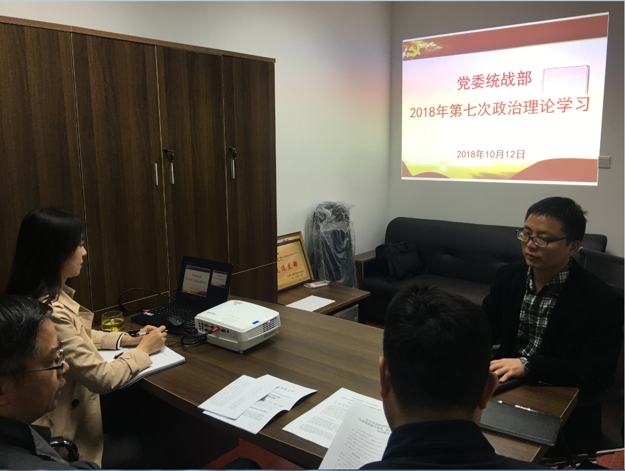 10月12日下午,党委统战部以“学习贯彻全国教育大会精神 建功立业新时代”为主题举行第七次政治理论学习,周文全部长主持学习会。