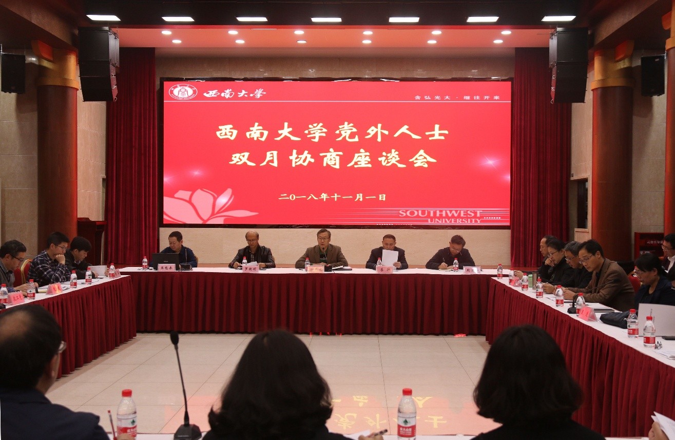 11月1日下午,学校党委在东方红会议厅召开2018年第三次党外人士双月协商座谈会,校党委副书记安春元主持会议,副校长李明、党委常委罗朝明、教务处处长吴能表、统战部部长周文全参加会议。