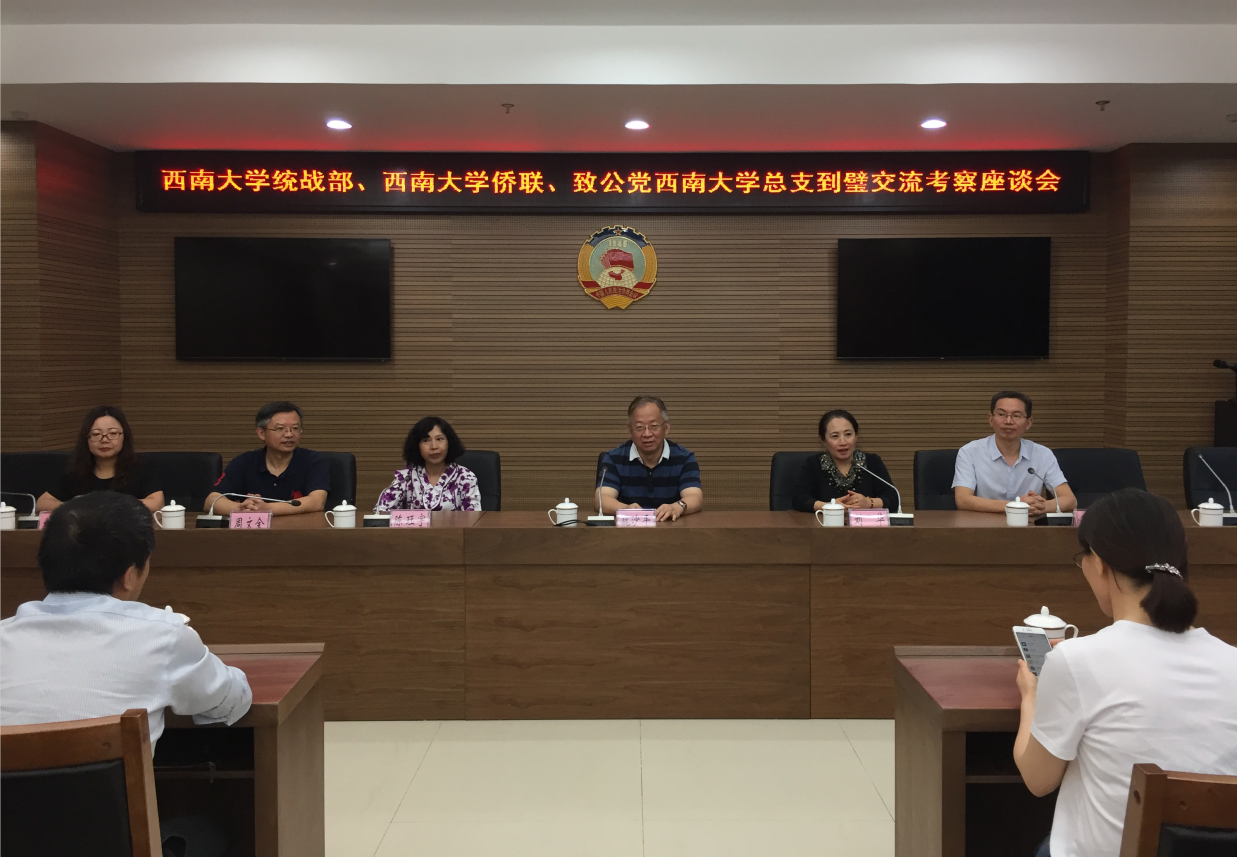 6月27日,学校侨联、致公党PA视讯总支部、党委统战部干部一行13人前往璧山区调研,并签署校地结对共建协议。市侨联常委、致公党市委副主委魏沙平,璧山区政协副主席、致公党璧山区支部主委刘华,PA视讯党委统战部部长周文全,北碚区侨联主席陈珏宇,璧山区侨联主席甘昌福等领导出席。