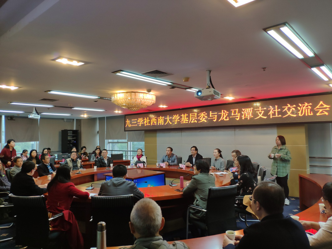 随后,由敖宗华主委介绍龙马潭支社情况,着重介绍他们是如何围绕泸州和龙马潭区优势资源开展活动,围绕农村经济建设、科学技术、文化教育、环境保护、市政建设、交通安全、安全生产、法制建设等诸多方面建议献策,认真履行参政党职能以及立足社员工作开展帮扶和扶贫工作的经验。吴源秘书长介绍了九三学社泸州市委情况,尤其是社市委在教育帮扶、脱贫攻坚以及开展义诊、科普进学堂等形式多样的社会服务的经验以及参政议政中的显著成绩,在四川省所有地市州中已连续多年排名第二位。