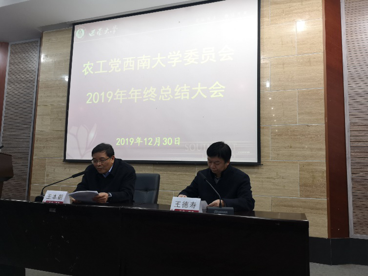 2019年12月30日下午4点30分,农工党PA视讯委员会在文学院报告厅举行了2019年度的年终总结大会。在校的农工党员40余人参加了大会。农工北碚区委主委张奕参加了会议交流。大会由王德寿教授主持。大会有五项议程。王本朝主委首先传达了农工党中央第十六届中央委员会第三次全体会议与农工党重庆市委五届四次全委会的会议精神。寇鹏程代表农工党PA视讯委员会作了农工党2019年度的工作总结报告。王本朝主委通报了委员会的财务收支情况。大会还向本年度政治理论文章获得市级、区级奖励者颁发了奖励。最后,全体参会人员进行了热烈的讨论交流。(寇鹏程 供稿)
