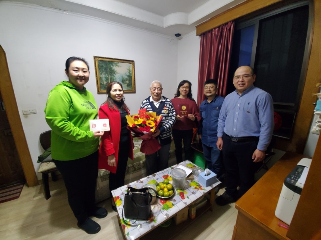 10月24日,在抗美援朝70周年以及重阳节即将来临之际,民革PA视讯一支部主委何开丽带领支委成员开展走访慰问老党员活动,先后拜访了97岁的钟伯英老师和86岁的涂鸣皋老师,以及91岁的抗美援朝老兵杜大江老师,为他们送去节日的问候和祝福。