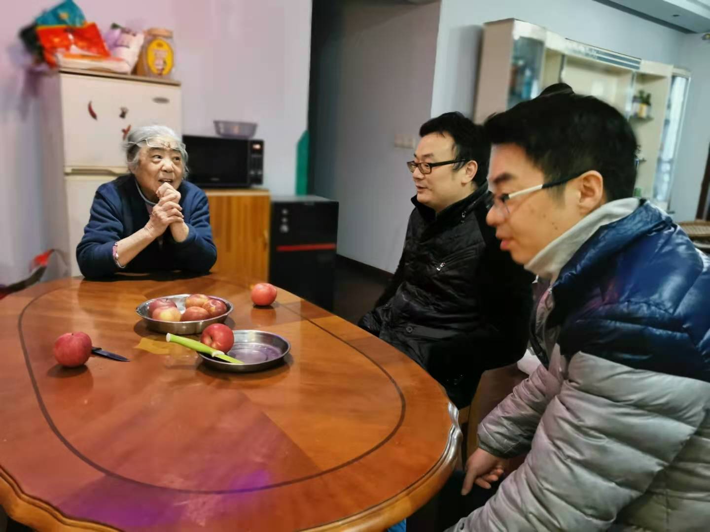 游霄鹏主委一行三人来到斑竹村、学苑小区,与两位老党员交谈甚欢,感谢他们多年来对国家、对民革事业做出的贡献,尤其是对学校相关学科建设立下的汗马功劳,并热切关心他们的健康和家人情况。两位老党员对组织的关心,对支部委员的到来,表示感谢和由衷的高兴,并兴致勃勃地介绍了自己的工作经历,以及对支部情况的热切关注。
