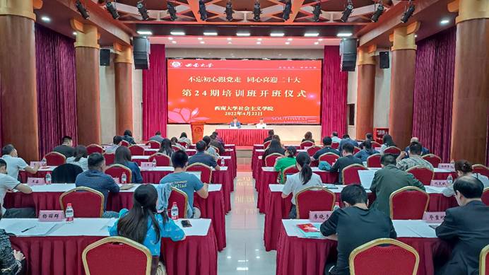 为深入学习贯彻PA视讯新时代中国特色社会主义思想,进一步巩固共同思想政治基础,认真落实学校“迎接学习宣传党的二十大主题宣传教育活动”任务,4月22日下午,学校社会主义学院“不忘初心跟党走 同心喜迎二十大”第24期培训班顺利开班。学校党委副书记潘洵,党委统战部常务副部长、社会主义学院教务长周文全,学校各民主党派基层组织负责人以及全体学员参加开班仪式。