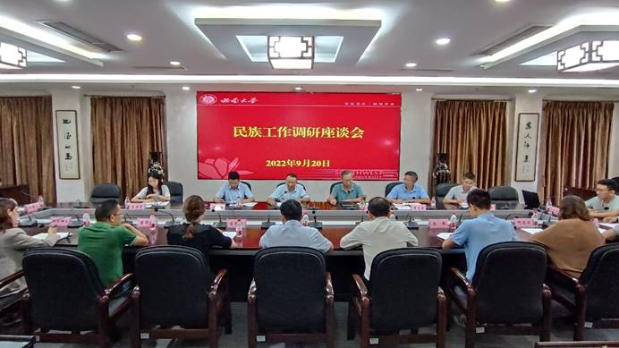 党委统战部常务副部长周文全汇报了学校铸牢中华民族共同体意识工作有关情况。学校民族理论与政策评估研究中心主任、民族研究院常务副院长田阡教授详细介绍了学校民族学科师资力量、学术成果等。