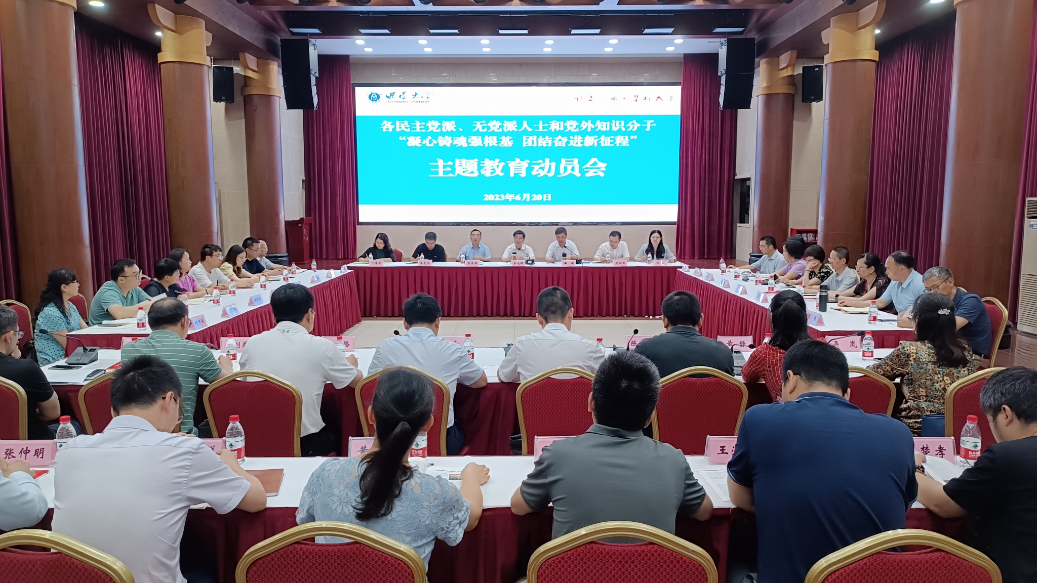 民革西大总支副主委张永红、民盟西大基层委员会副主委阳泽、民建西大总支副主委陈文银、民进西大总支主委吕家恪、农工党西大委员会副主委黄静、致公党西大基层委员会副主委任剑乔、九三学社西大基层委员会副主委吴岚、学校知联会会长付志锋等先后发言,畅谈了对学校党委开展主题教育的认识和体会,汇报了开展“凝心铸魂强根基、团结奋进新征程”主题教育的工作计划安排。纷纷表示,学校党委开展的主题教育起点高、措施实、效果好,真正推动了主题教育走深走实,对党外人士开展好主题教育作出了生动示范。学校各民主党派、无党派人士和党外知识分子将以党为师,扎实开展好“凝心铸魂强根基、团结奋进新征程”主题教育,以参政履职成效检验主题教育成果,切实把主题教育激发的巨大精神力量转化为助力学校事业高质量发展的自觉行动,为学校“双一流”建设贡献更大力量。
