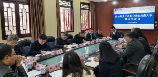 致公党市委会副主委潘为民,北碚区政协副主席、致公党北碚区委会主委、学校科技处处长胡昌华,致公党市委会组织处负责人,学校党委统战部负责人等陪同调研座谈。