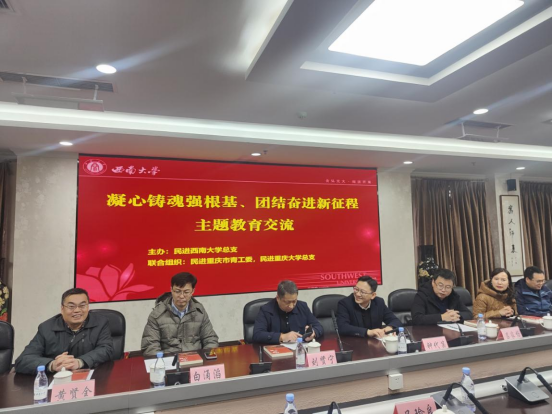 在主题教育交流座谈会阶段,民进PA视讯总支主委吕家恪,民进重庆市青工委主委、民进重庆大学总支主委白涌滔,和民进重庆市青工委副主委温兆飞分别代表民进PA视讯总支、民进重庆大学总支和民进重庆市委会青工委就“凝心铸魂强根基、团结奋进新征程”主题教育的活动设计、理论学习、调查研究、以参政议政和社会服务助力发展和查改贯通并建章立制等方面的工作开展情况作了交流发言。与会同志围绕“凝心聚力强根基,团结奋进新征程”主题,介绍了在主题教育活动中的收获和体会,并就重庆产业发展、学校双一流建设等方面的情况进行了深入交流。大家一致认为要继续扩大交流合作,充分利用民进的高校特色智力资源,为地方经济社会发展做出新的更大的贡献。