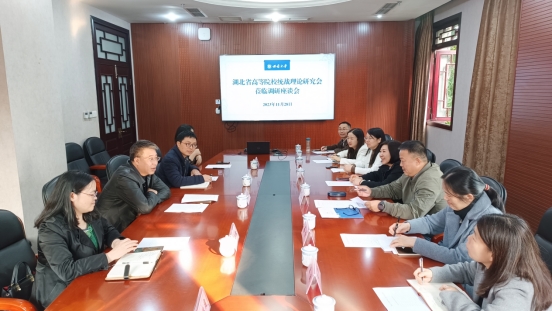 1128日下午,湖北省高等院校统战理论研究会来校调研高校党外代表人士队伍建设。学校党委统战部全体工作人员参加调研座谈。