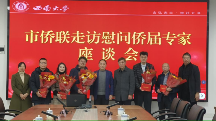 1月9日上午,市侨联党组成员、副主席罗强一行来校慰问侨界专家。校党委副书记潘洵陪同慰问。