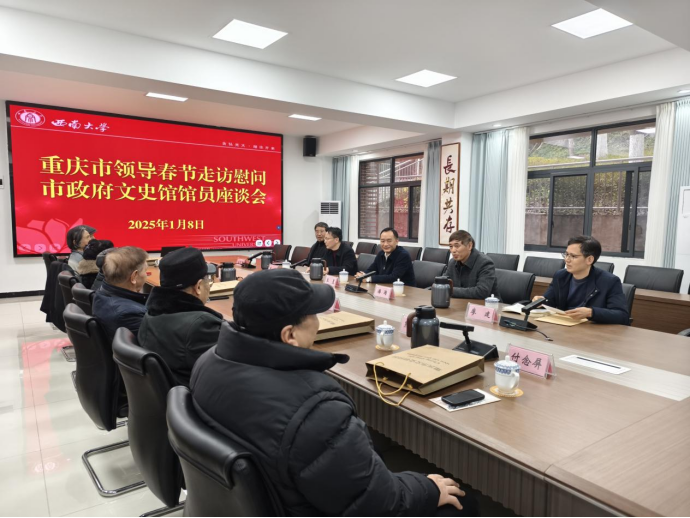 1月8日下午,市政协副主席王昱一行来校慰问市政府文史馆馆员。校党委书记张卫国、党委副书记潘洵陪同慰问。