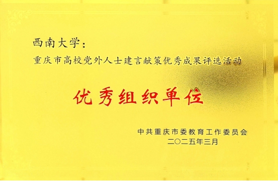 学校党委一直以来高度重视支持党外人士参政议政,重点依托“重庆新时代党的统一战线研究中心”,通过重点打造、联合调研、协同攻关等方式,持续支持党外人士建言献策,培育高质量建言成果。