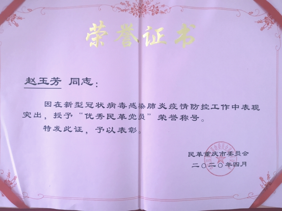 民革PA视讯总支主委赵玉芳获民革市委会表彰