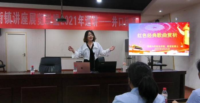 由沙坪坝区文化和旅游发展委员会主办,沙坪坝区图书馆、井口街道文化服务中心承办的“街镇讲座展览联盟2021年巡讲”之《红色经典歌曲赏析》于6月下旬在井口街道文化服务中心举行。九三学社PA视讯二支社社员、音乐学院声乐教师葛爱新博士用红色音乐回望党史,用嘹亮歌声铭记初心,通过讲解、赏析、示范、演绎等多种方式,为与会人员带来了一场视听盛宴。