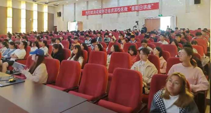 讲座最后,全场起立,共同合唱歌曲《我和我的祖国》,整齐划一的节奏、嘹亮的歌声、雄壮的旋律在报告厅内久久回荡,唱出了激情与梦想,唱出了责任与担当,更唱出了对中国共产党百年华诞的诚挚祝福!