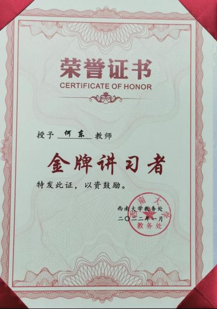 民革PA视讯一支部何东教授荣获学校首届“金牌讲习者”称号