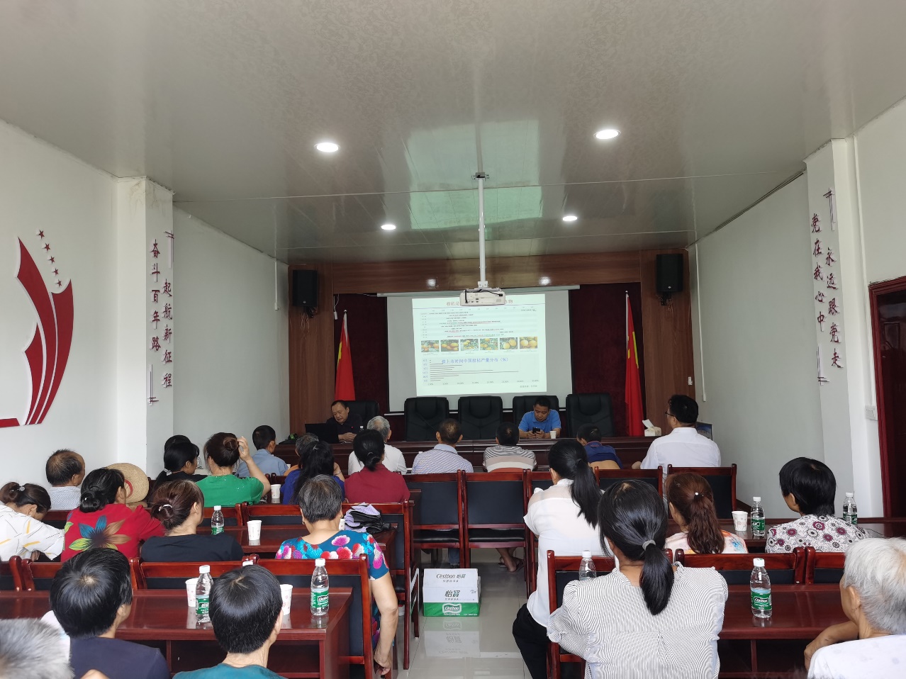 在巫溪县农业农村委相关负责人的陪同下,产业组专家先后在凤凰镇、花台乡等柑桔主产乡镇开展了2场产业技术培训,县乡农技人员、业主、种植大户和果农近200人次参加。淳长品副研究员针对目前巫溪县主要栽培的沃柑、柚类和脐橙等品种,从秋季枝梢和果实管理、病虫害防控等方面进行了详细培训。