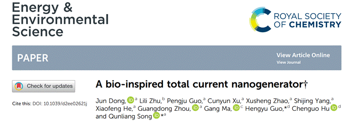 近日,九三学社社员、材料与能源学院宋群梁教授团队在国际知名期刊Energy & Environmental Science上发表题为“A bio-inspired total current nanogenerator”(受生物启发的全电流纳米发电机)的研究成果。