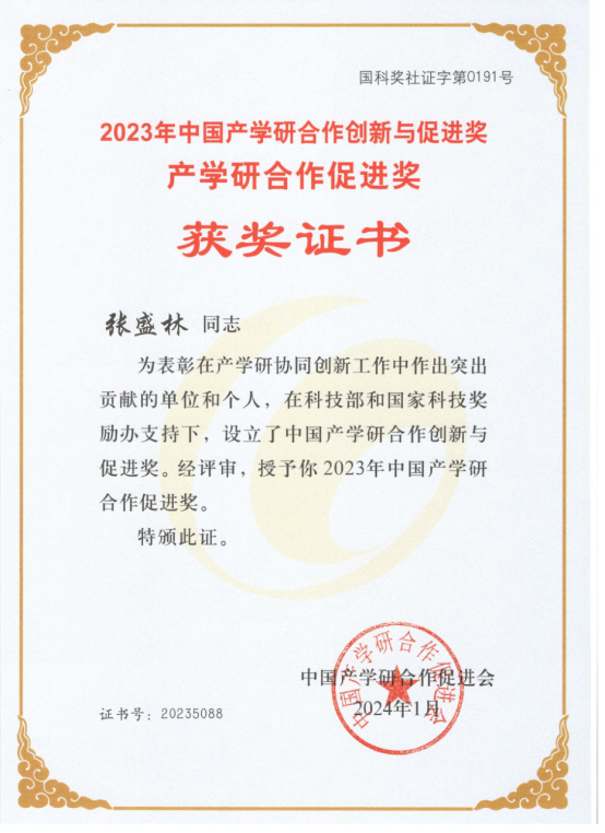 民建会员张盛林教授荣获2023年中国产学研合作促进奖
