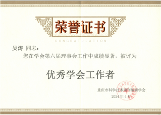 九三学社社员吴涛当选重庆市科技期刊编辑学会第七届理事会常务理事并被评为“优秀学会工作者”