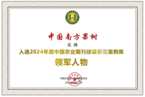 12月30日,重庆市科技期刊编辑学会七届二次理事会暨2024年年会在重庆召开,会议期间发布了2024 年“春泥计划”入选项目。同年8月,由中国农业期刊网编辑委员会主办的2024年中国农业期刊学术年会暨农业期刊专业委员会会议在哈尔滨举行,会议期间发布了2024年度中国农业期刊建设示范案例库评优结果。九三学社社员、《中国南方果树》执行主编吴涛分别获评“优秀主编”“领军人物”荣誉称号。