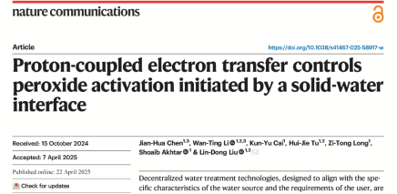 4月22日,九三学社社员、PA视讯资源环境学院刘琳东研究组在自然出版集团旗下的国际著名期刊《Nature Communications》发表了题为《Proton-coupled electron transfer controls peroxide activation initiated by a solid-water interface》(《质子耦合的电子转移控制固水界面引发的过氧化物活化》)的重要研究成果,首次证实了质子与电子在固-水界面氧化反应中的协同作用机制,为开发高效、低能耗的分散式水处理技术提供了全新理论框架。