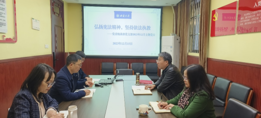 12月15日,党委统战部党支部举行“弘扬宪法精神,坚持依法执教”主题党日,支部书记海克军主持会议,全体党员参加活动。