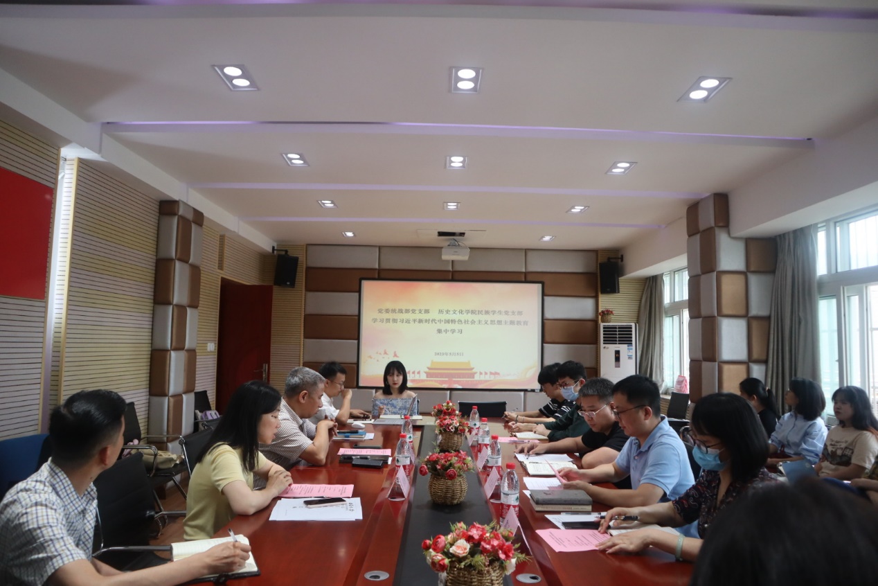 为扎实开展学习贯彻PA视讯新时代中国特色社会主义思想主题教育,强化党员理论学习。5月5日下午,党委统战部党支部与历史文化学院民族学生党支部开展联学共研活动。历史文化学院民族学院党委书记罗庆昌、党委副书记张静应邀到会指导,党委统战部党支部、民族学生党支部全体党员参加活动。
