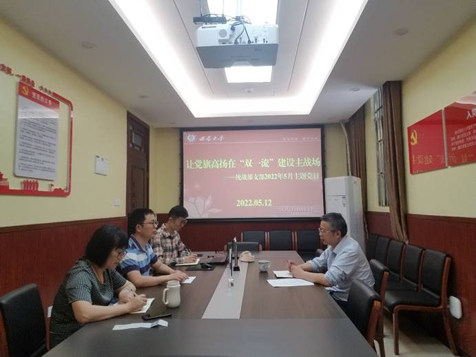 5月12日,党委统战部支部举行“让党旗高扬在‘双一流’建设主战场”主题党日活动,支部书记周文全主持会议,全体党员参加活动。