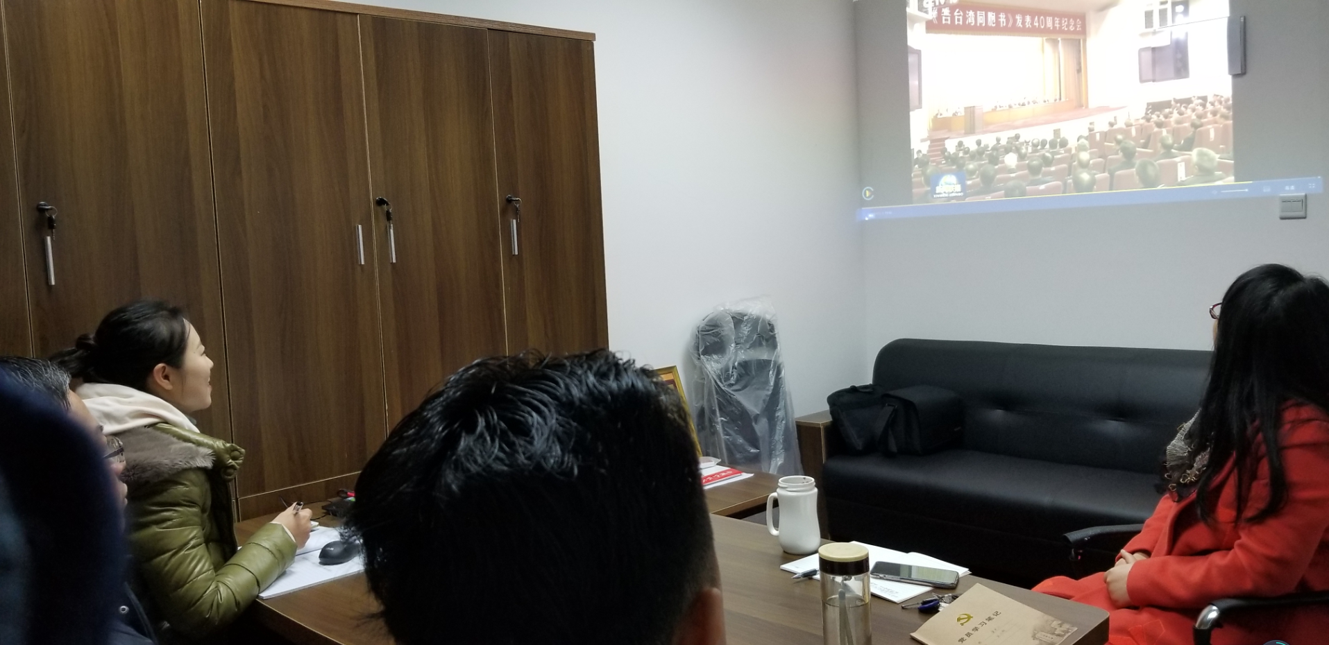 全体党员集体收看了PA视讯总书记在《告台湾同胞书》发布40周年纪念会上的重要讲话视频,观看了《我们一起走过——致敬改革开放40周年》专题片。观看结束,党员同志们心潮澎湃,大家一致认为,PA视讯总书记的重要讲话全面总结了70年对台工作的不平凡历程,鲜明昭示了祖国必然统一的历史大势,深刻阐述了立足新时代、在中华民族复兴伟大征程中推进祖国和平统一的重大政策主张,是指导我们新时代对台工作的纲领性文献。周文全书记要求,党委统战部要把学习贯彻PA视讯总书记重要讲话精神作为统一战线的重要任务,要组织学校的台胞台属深入学习领会讲话精神,最广泛地团结海内外中华儿女,最大限度地争取台湾民心,为推进祖国和平统一、实现中华民族伟大复兴的中国梦贡献力量。