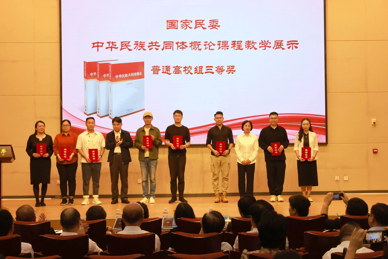 大赛设普通高校组和高职院校组,分视频和现场展示两个环节,参赛院校多、覆盖范围广。视频展示环节共有来自29个省(区)224所高校的336名教师参加,经专家评审,最终有52名普通高校教师和19名高职院校教师进入现场展示。评审组由北京大学等高校专家和民族、教育工作部门负责同志担任,专家阵容强、评审要求高。经过激烈角逐,我校历史文化学院 民族学院陈永亮获普通高校组三等奖。