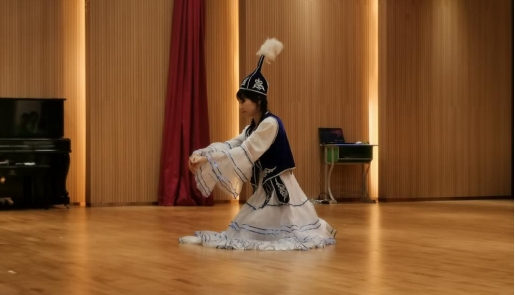 (哈萨克族同学表演本民族传统舞蹈节目《黑走马》)