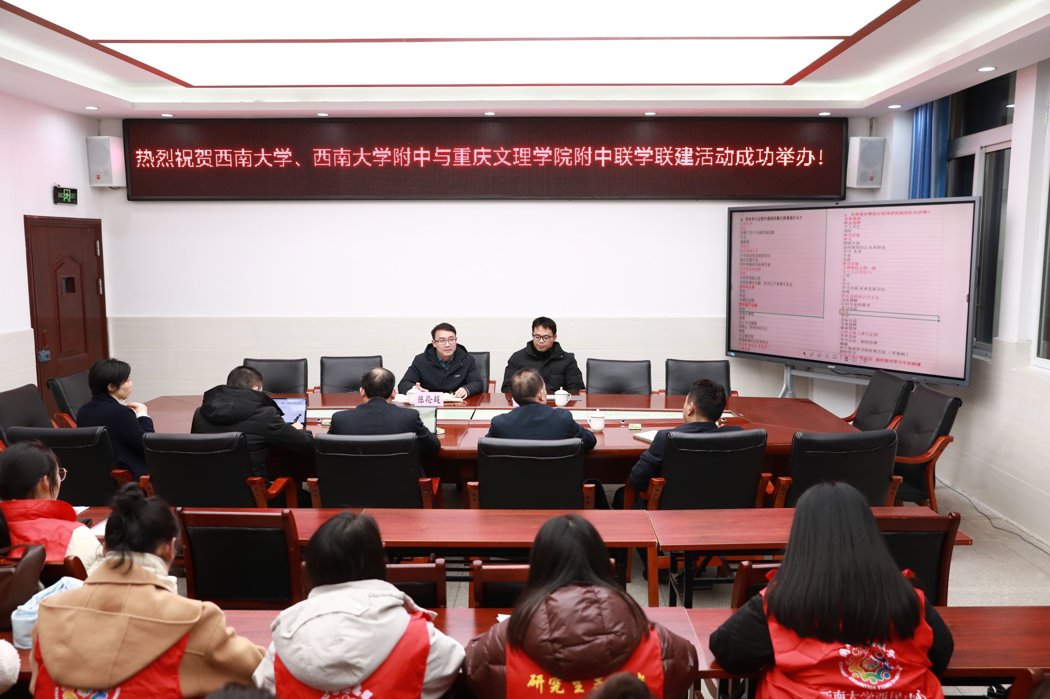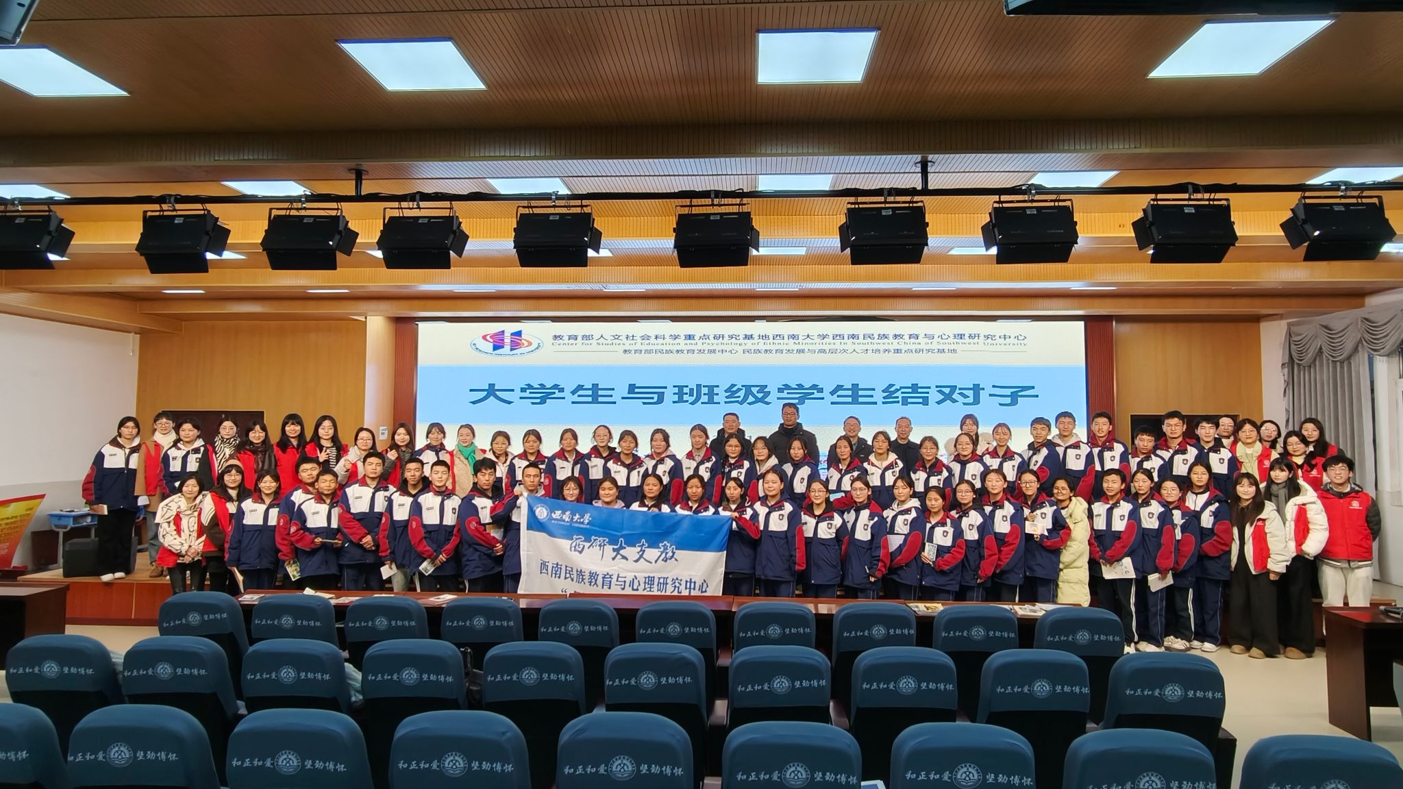 为深入推进扎根学校建设,1月7日,PA视讯西南民族教育与心理研究中心(以下简称“中心”)“同心圆”团队,会同PA视讯附属中学(以下简称“西大附中”)干部教师代表,共同组成实践团队,赴扎根学校联盟成员、荣获全国民族团结进步模范集体称号的重庆文理学院附属中学(以下简称“重庆文理附中”),开展以“牵手青海班·共铸同心圆”为主题的联学共建实践活动。