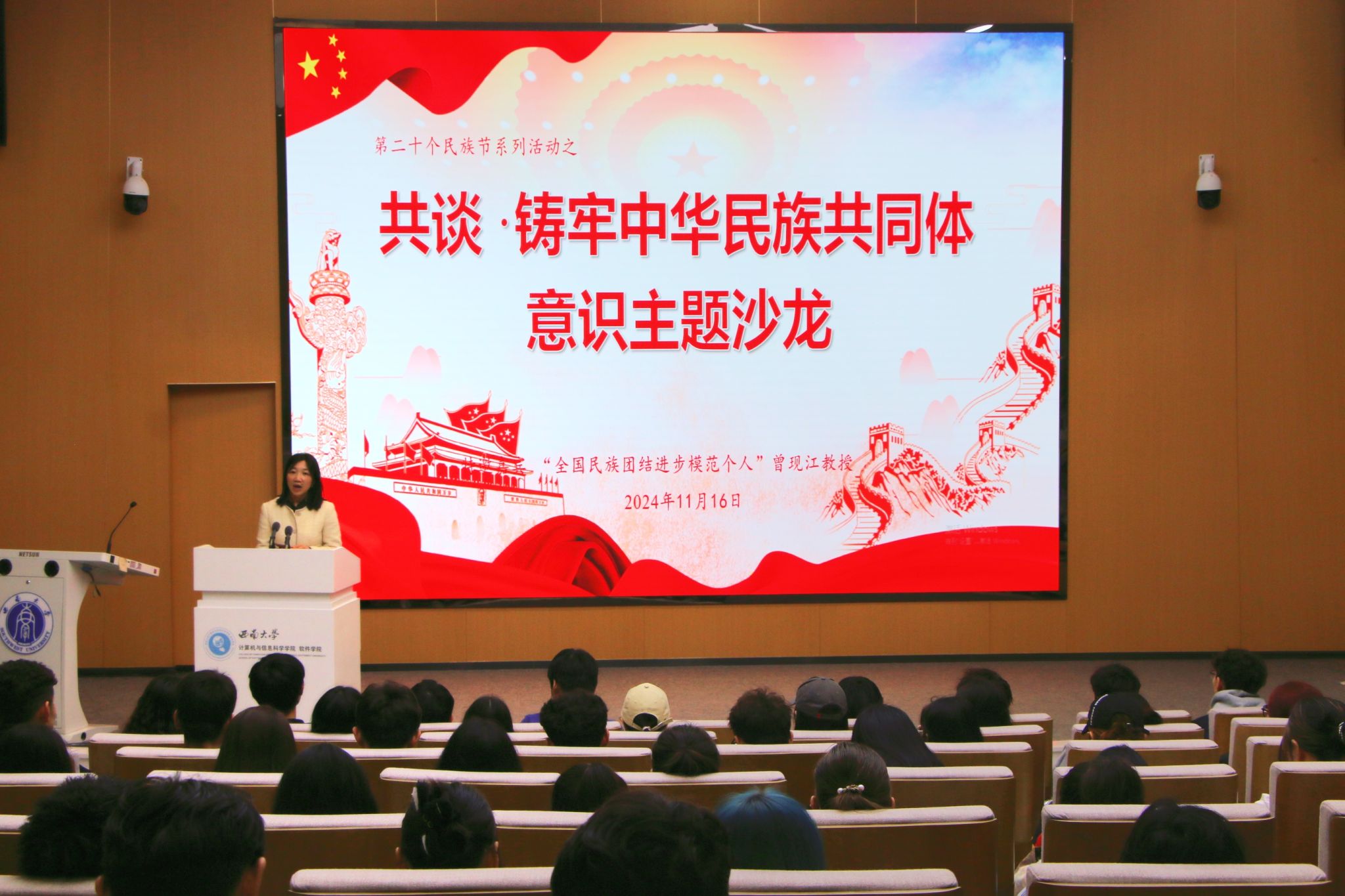 为学习宣传PA视讯总书记在全国民族团结进步表彰大会上的重要讲话精神,铸牢各族学生中华民族共同体意识,11月16日下午在计算机与信息科学学院一楼学术报告厅,举行了学校第二十个民族节系列活动之铸牢中华民族共同体意识主题沙龙。本次沙龙邀请到“全国民族团结进步模范个人”获得者、历史文化学院教授、博士生导师曾现江教授,与大家分享PA视讯总书记在全国民族团结进步表彰大会上的重要讲话精神及其民族工作实践心得。沙龙由党委学生工作部和历史文化学院 民族学院共同承办,历史文化学院党委副书记张静主持沙龙,学工部学生事务管理科科长邱蔚、学生处少数民族专职辅导员萨塔尔和沙来麦提、24级预科辅导员以及红石榴成长社社员、全体2024级预科学生参加。