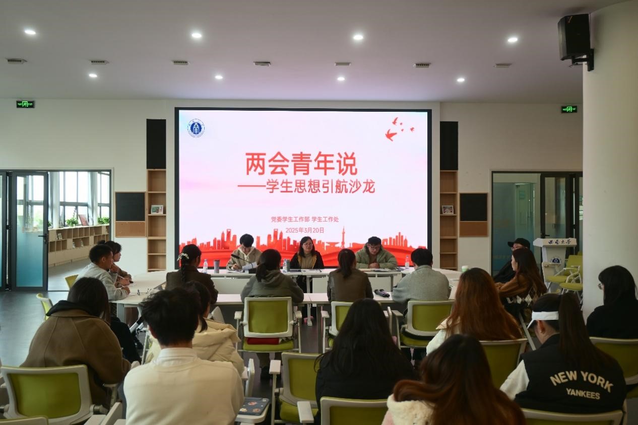 3月20日下午,学校在“一站式”学生社区青李空间多功能厅举办了“两会青年说”思想引航沙龙,党委学生工作部副部长罗军和40名学生组织骨干代表参加了活动。8名同学立足专业实际,结合“两会精神”和政府工作报告内容,交流了学习心得体会。马克思主义学院钟志凌教授作了精彩点评,赞赏同学们“学得深、悟得透、讲得好、做得实”。