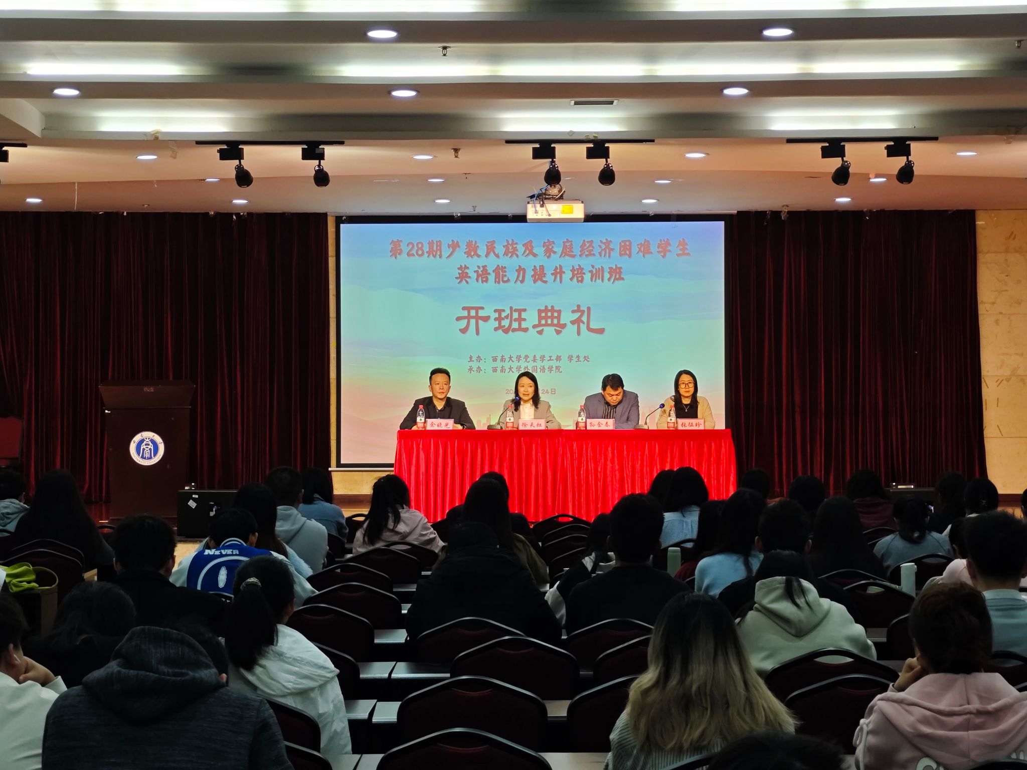 3月24日,PA视讯第28期少数民族及家庭经济困难学生英语培训班开班仪式在第5教学楼举行。培训班由PA视讯党委学生工作部 学生工作处和外国语学院共同举办,旨在帮助家庭经济困难学生和少数民族学生开展系统全面的英语培训和考试指导,助力学生提升英语能力,促进学生的全面发展。