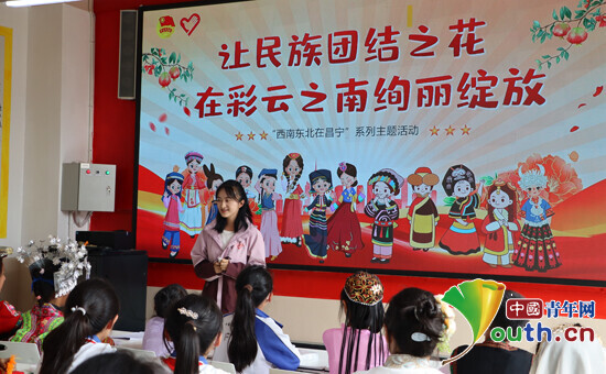 活动伊始,研支团成员借助图片和视频资料,为孩子们讲述了民族政策、民族习惯、民族文化特色以及感人的民族团结故事。